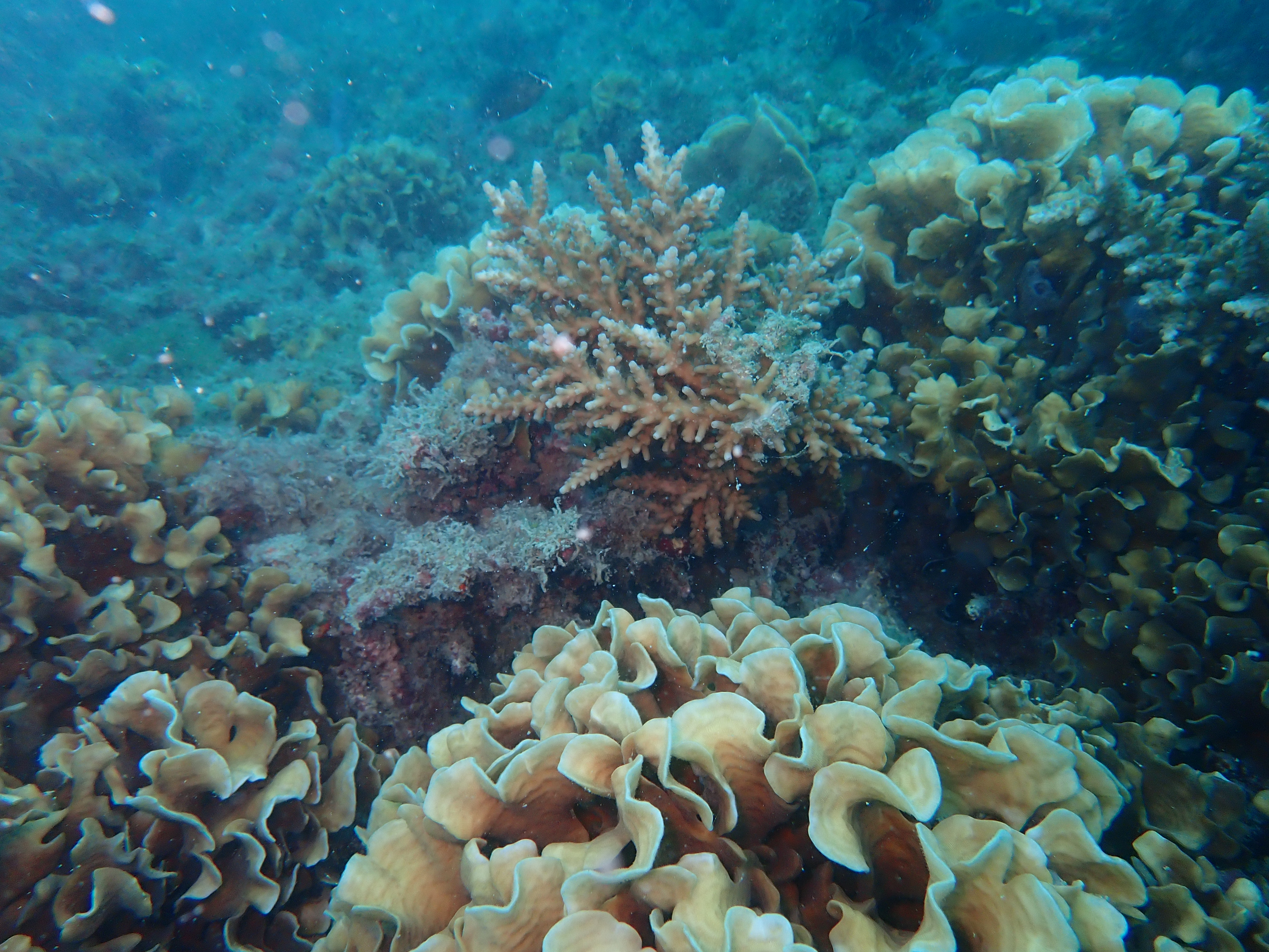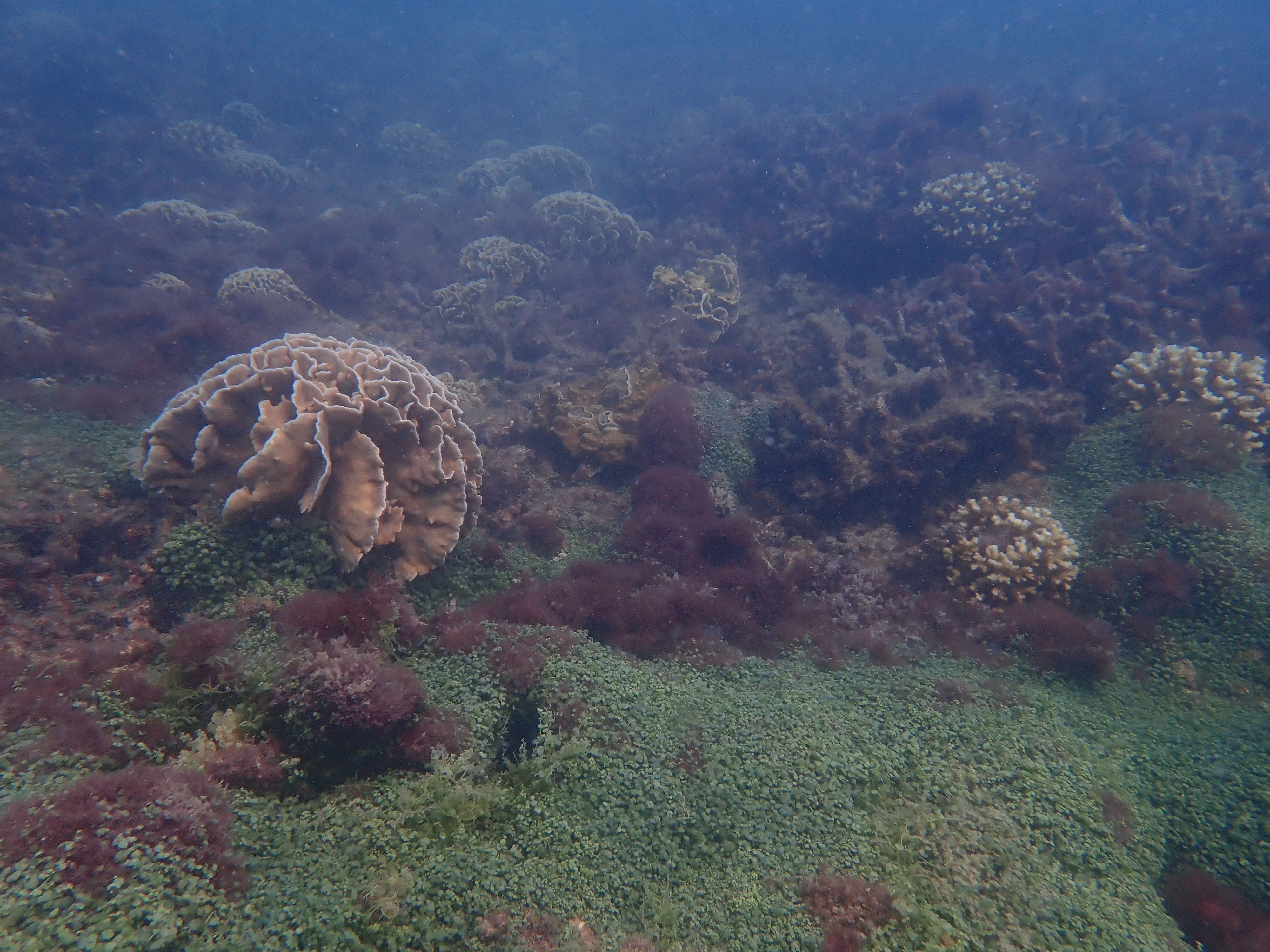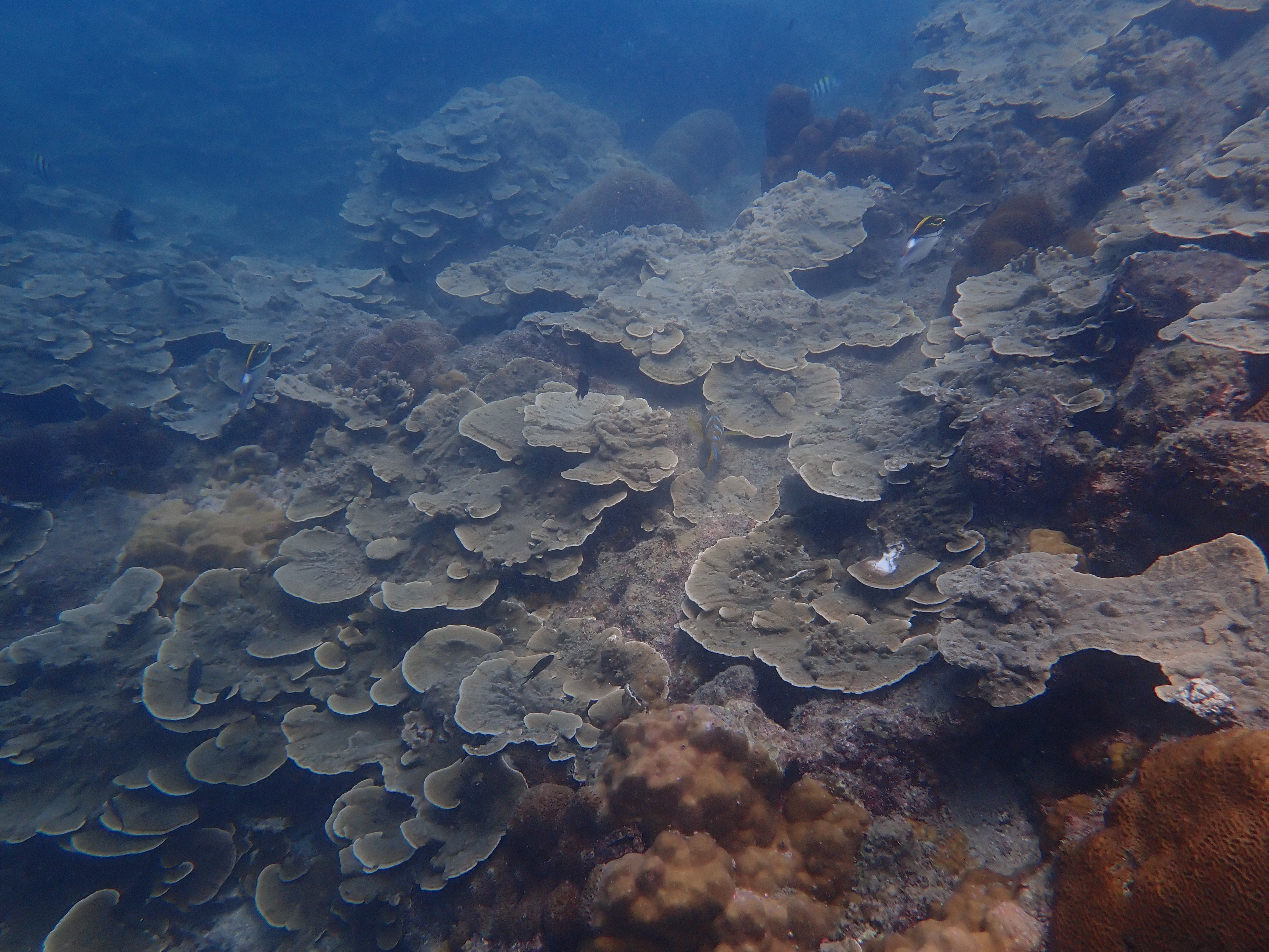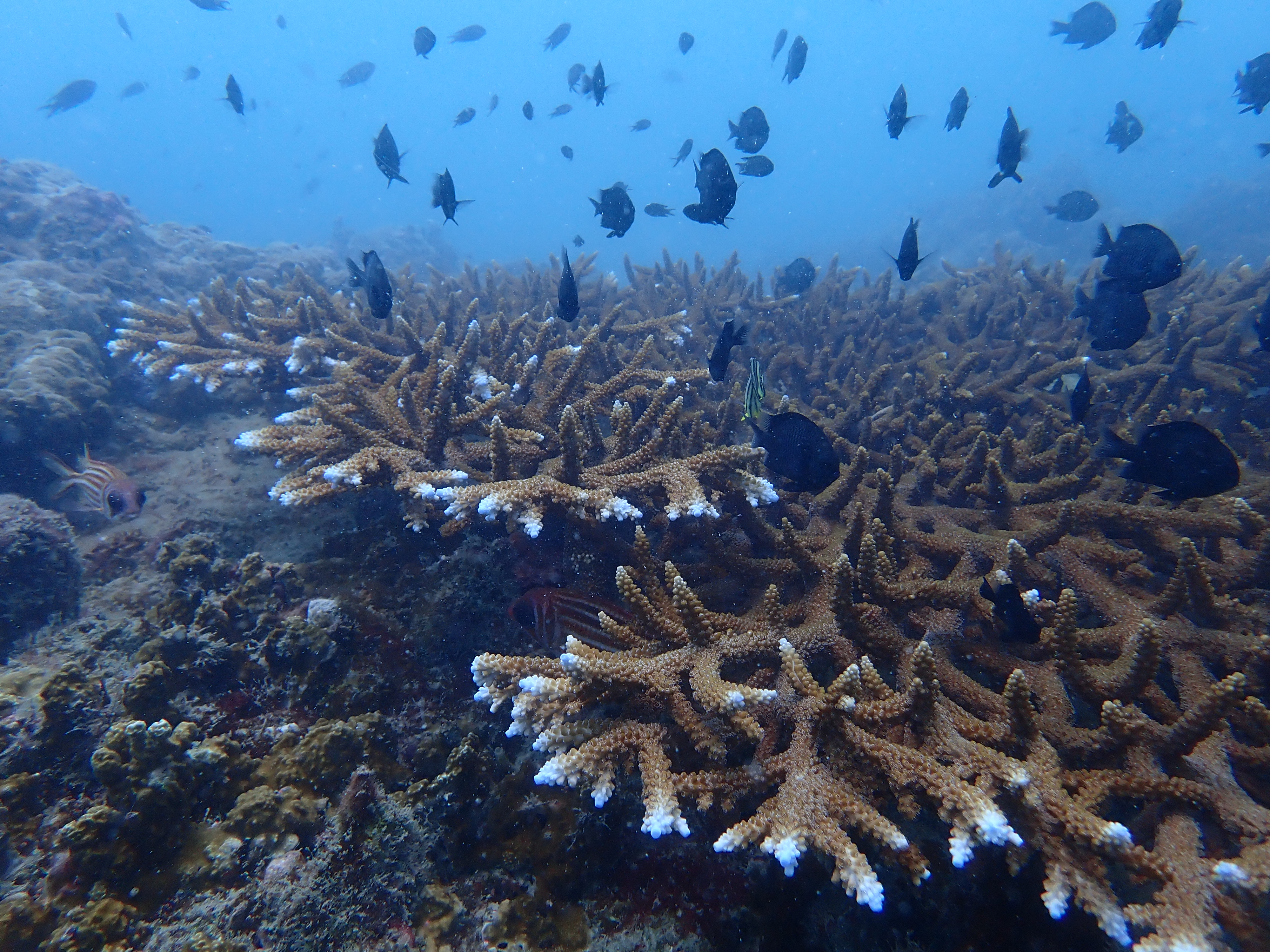 จากการติดตามไม่พบปะการังฟอกขาวหรือสีซีด พบว่าอุณหภูมิน้ำทะเลยังมีค่าปกติเหมาะแก่การเจริญเติบโตของปะการัง แนวปะการังส่วนใหญ่ตายจากการฟอกขาว ในปี 2567 พบสาหร่ายขึ้นปกคลุมบนซากปะการัง ซึ่งจากการติดตามในครั้งนี้ พบการเริ่มมีการลงเกาะของตัวอ่อนปะการัง เช่น ปะการังเขากวาง ปะการังดอกกะหล่ำ ปะการังลายดอกไม้ และปะการังเห็ด