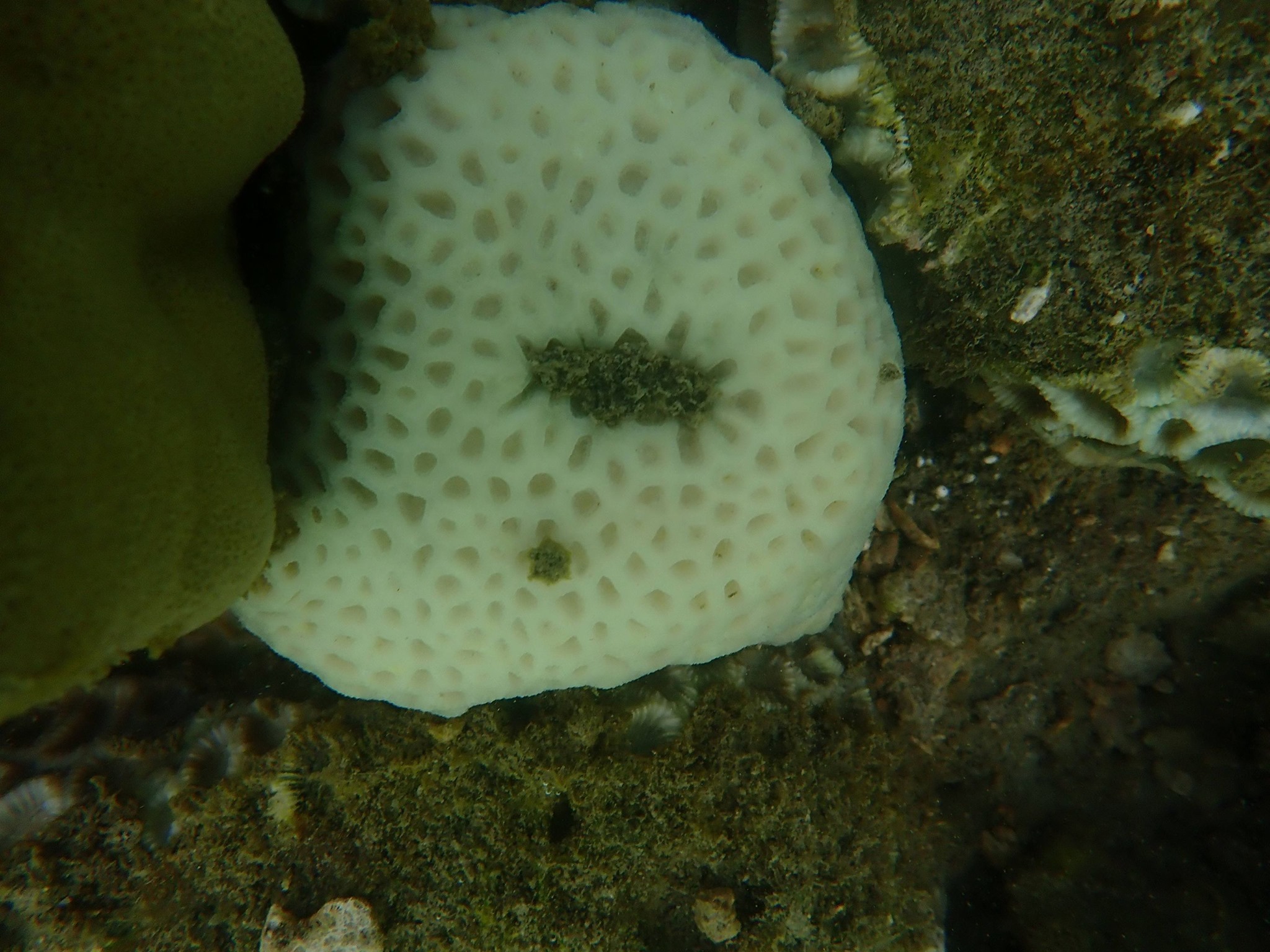 พื้นที่ลาดชันของแนวปะการัง ความลึกน้ำ 4-5 เมตร ไม่พบการฟอกขาวทั้งโคโลนี พบเพียงการซีดของสีเท่านั้นโดยพบในสกุล Porites sp., Pavona sp. และ Goniopora sp.